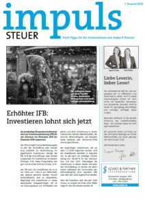 Als kurzfristige Konjunkturmaßnahme wird der Investitionsfreibetrag (IFB) für den Zeitraum von November 2025 bis Dezember 2026 angehoben. Der Zeitpunkt für anstehende Investitionen sollte daher gut geplant werden. Derzeitige IFB-Regelung Der IFB führt zu einer...